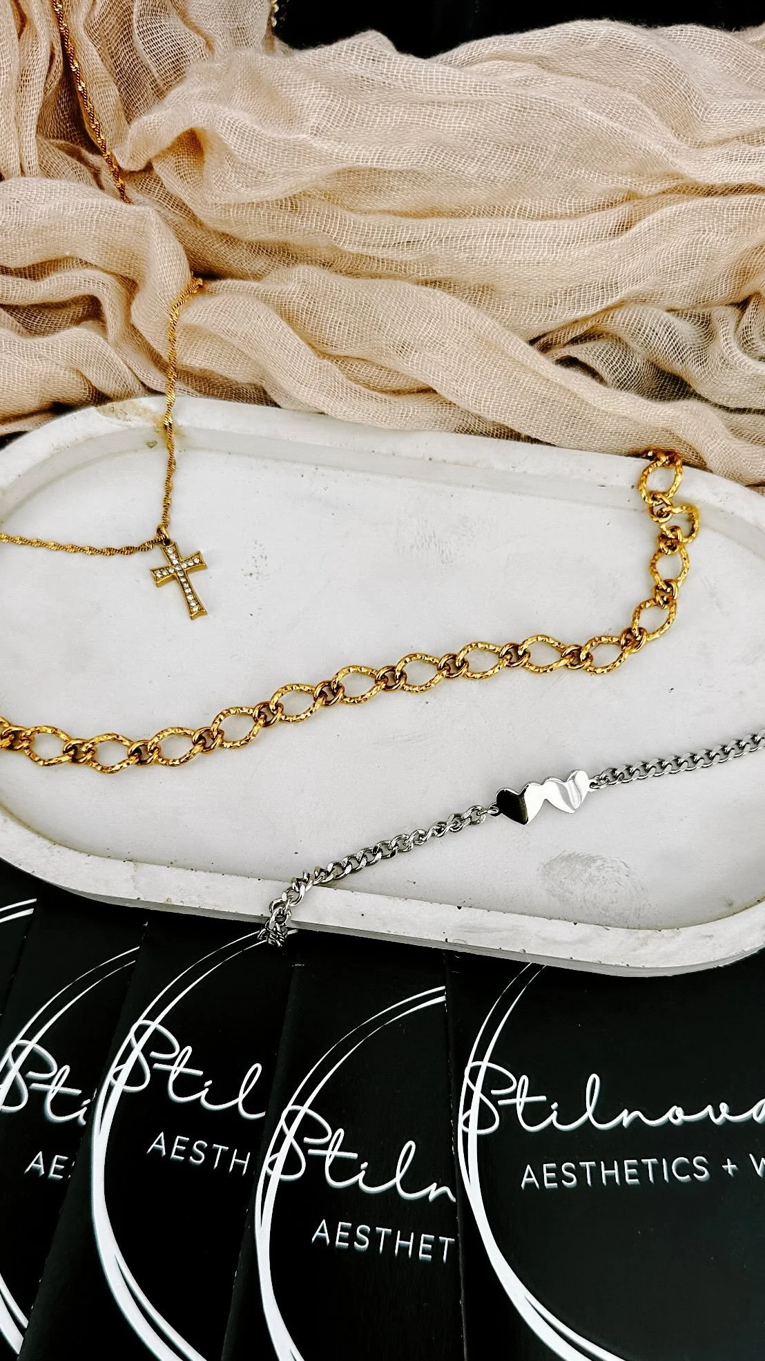 The materials I carry include .925 sterling silver, 14k gold-filled & 14k solid gold (pre-order with deposit), offering a range of options to suit different tastes. My style in jewelry is a blend of dainty, edgy & bold with a touch of glam. From textured chains to delicate designs, there is something for everyone!
